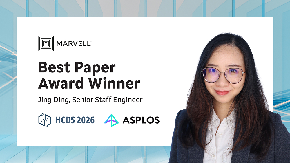At the Heterogeneous Composable and Disaggregated Systems (HCDS) Workshop, co-located with Architectural Support for Programming Languages and Operating Systems (ASPLOS), Senior Staff Engineer Jing Ding won Best Paper for her research on the Marvell® Photonic Fabric™ Technology Platform.