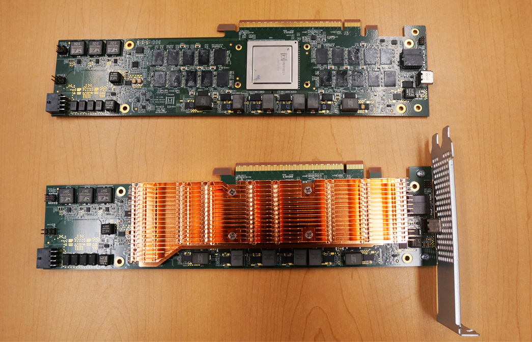 Marvell Structera A CXL memory accelerator boards with and without heat sinks.